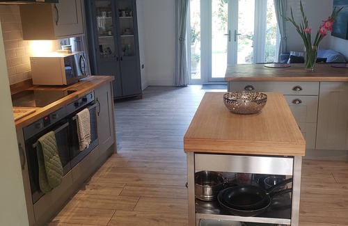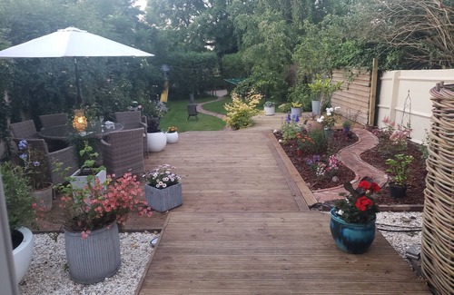 The house is exceptionally clean and presented to a high standard . It is very spacious , with a large garden backing onto fields. It is a private and peaceful property where guests comfort and relaxation is a priority