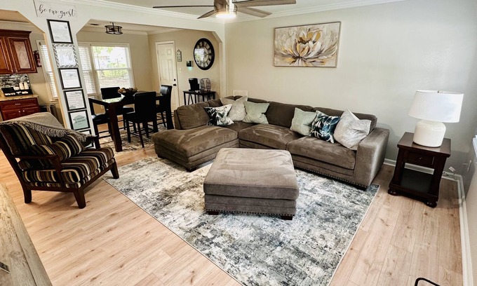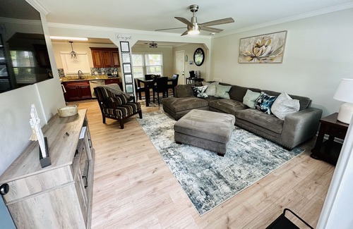 The Peninsula Cozy Oasis is the ideal place for you to retreat, relax, and reset yourself! Consider this the ultimate home away from home with all of the perks and none of the stress! This quaint 3 bedroom 2 bathroom rancher sleeps up to six people with a hint of comfort in every single room. It is a mini-retreat especially designed for you to come alone, or with your family to enjoy the beautiful city of Newport News! This fully furnished home is equipped with free wiFi, new appliances, smart TV access, outdoor sitting terrace, game room, charcoal grill, along with a fully equipped kitchen! Whether you are here visiting for a few days or decide to enjoy our Cozy Oasis for months, this beautiful location is also the best location to enjoy local shops, restaurants, museums, hospital locations, military attractions and so much more! Don't want to go out? The Oasis has everything you need in our fully equipped kitchen to make an Expresso with our Keurig in the morning or create an at home dining experience at night. So come enjoy this beautiful home and allow us to help you create amazing memories that will last a life time!