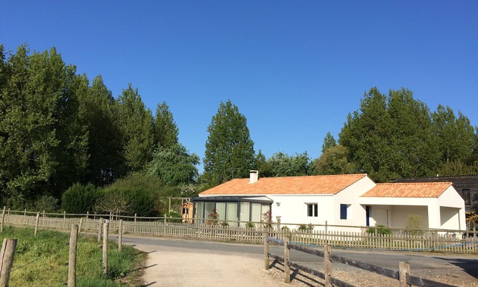 This house (100sqm) of 2009, renovated in 2017, is located picturesque only 2 km from the beach of Sauveterre without vis-à-vis on the edge of a forest and a meadow of horses in a residential area.