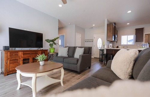 Beautiful, Brand New 3 Bedroom Casita on Foothill Blvd. Kitchen stocked with everything you need, comfortable beds and a tree-filled view from the front porch. Our location is secluded yet close enough to downtown, casinos and recreation. Backyard dining area with BBQ and fire pit. Our driveway, although on an incline, is long enough to park your boats and other recreational vehicles.