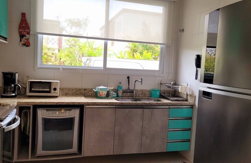 House in condominium, has 170 square meters, 4 suites, 01 toilet and a maid's bathroom. large, airy room, 03 places for car. All bedrooms and living room has air conditioning brand new. large windows to gas heating in all bathrooms, beds to accommodate up to 12 people with two double beds 2 bunk beds and 4 single beds. Condo with beach service, swimming pool, playground and tennis courts. 500 meters from the beach and 900 meters from the shopping Monjolo. Easy access and beautiful beach to enjoy. Entrance gate number 06 from the beach.
