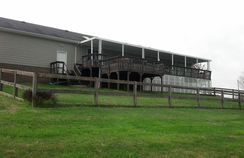 ****NO ANIMALS allowed in house..."Call" 9313079839 if any questions.. Any animal found on site you will be asked to leave. Now about house three bedroom two bath with large kitchen, dining room and living room all open.. The kitchen has table and four chairs, The living room has a love seat and couch. Each two of the bedroom have king size beds the other has a queen lots of room for air mattresses.. The bathrooms both have showers one has a single sink the other has double sinks.. It has a deck on the back facing the lake full length of the house where you can sit and watch the sun go down with a grill.. Also has a private drive down to the steps that lead out to the boat dock which is about 600ft behind house.. There's a public boat ramp less then 3 miles only few minutes by water. Tour the Jack Daniel's Distillery. The more than 100 year old courthouse is the center of a busy little town filled with shops, antiques, country dining, store browsing and relaxation. If you are really hungry, Miss Mary Bobo's Boarding House Restaurant has two seatings most days (closed on Sunday), but reservations are required. It's a place for true southern hospitality and home cooking served family style. Also Barrel House BBQ, Southern Perks,Whiskey Runners Restaurant.. Drive a few miles and you can be at the Tim's Ford State Park and Marina(Hard Dock Café), Bear Trace (a Jack Nicklaus Signature Golf Course), the Elk River for canoeing and trout fishing, the beautiful Tim's Ford Lake (Lost Creek boat ramp), George Dickel Distillery, Prichard's Distillery..