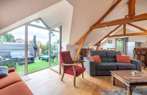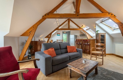 - Attic living room with lounge area (TV and double sofa bed)