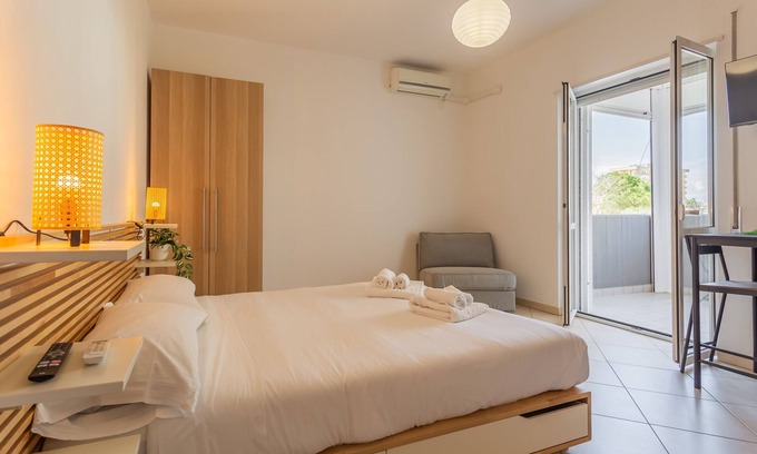 Modern room with small kitchenette and private parking a few minutes from Pane e Pomodoro beach.The room is located on the first floor of a modern building with an elevator. It features a kitchenette, equipped with an electric stove, refrigerator, and sink, a double bed, a single armchair bed, a small dining table, and boasts a large balcony with a coffee table and washing machine. A bathroom with shower completes the layout.Free wifi, air conditioning, and heat pump heating will be available in the accommodation.Guests will benefit from an outdoor parking slot inside the property.There are other accommodations inside the building.*Upon arrival or a few days before arrival it may be required to pay a tourist tax, which varies according to local regulations. You will find your reservation details within the Guest Area of Wonderful Italy.Fascinating, rich in history, and authentic: Bari is the capital of Puglia and the most populous city overlooking the Adriatic Sea. Also known as the "Gateway to the East," the city has a strong merchant-entrepreneurial tradition and has always been a focal point of trade and contact with the Middle East. The city's offerings are truly rich: ancient churches, romantic glimpses of the sea, historic palaces, relaxing walks along the waterfront, and, finally, local gastronomic treasures such as orecchiette, focaccia, or panzerotti. The discovery of the city certainly begins in the area of "Bari Vecchia," or the oldest core where most of the city's sites of interest are located. Visiting its historic center is a bit like stepping back in time. Walking through the alleys of Bari Vecchia, one crosses Via Arcobasso, also known as Via Orecchiette, where local ladies prepare, according to ancient recipes, fresh local pasta. Among the city's main attractions are the Basilica of St. Nicholas, built at the end of the 11th century, a pilgrimage destination and symbol of Catholic and Orthodox culture, and the Norman-Swabian Castle, a legacy of Frederick II of Swabia, between the sea and the old town. In addition, numerous Apulian destinations such as the city of Trani (50 km), with its breathtaking scenery, rich in history and harmonious architectural lines, Castel del Monte (55 km), one of Italy's 54 UNESCO World Heritage sites, Alberobello with its typical trulli (55 km) and Castellana Grotte (45 km) are easily accessible from this city. Moving south, Polignano a Mare, known as the "Pearl of the Adriatic," will leave you speechless with its crystal-clear waters and rock embroidered with cavities carved by the sea.Bari-Karol Wojtyla International Airport is a 30-minute drive, while Brindisi Airport is 115 km away.