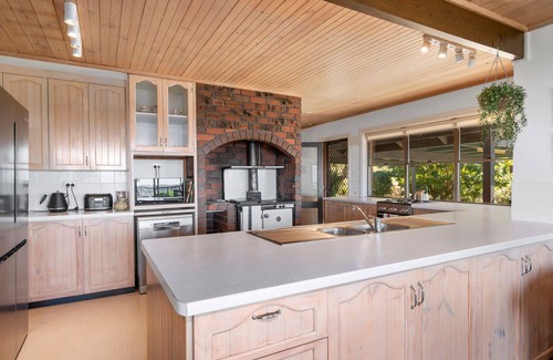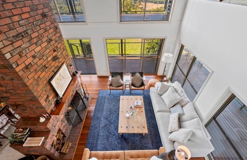 Sprawling across 2 floors, the master bedroom is located on the ground level, while the upper level houses 3 bedrooms. A majestic 7-meter raked ceiling towers above a charming exposed brick fireplace, the heart of the home. Each bedroom can be arranged with either a king-size bed or two king singles.