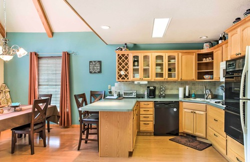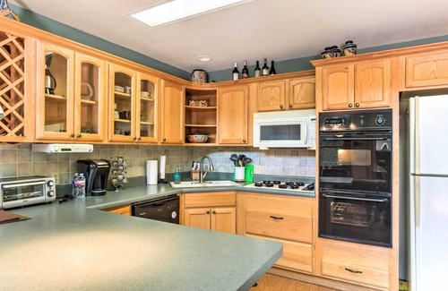 After an adventure-filled day, there is no better way to refuel than preparing a carbohydrate-filled feast in the fully equipped kitchen with a 4-burner gas stovetop, two ovens, microwave, and all the necessary cooking utensils. Enjoy your meal at the wooden dining room table while gazing through the windows at the beautiful pine and aspen trees.
