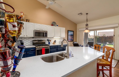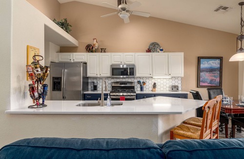 This professionally decorated home is located in northwest Tucson. Enjoy the beautiful mountain views while you grill at the outdoor kitchen shaded by a Ramada. Sip your morning coffee or evening cocktail on the covered patio, swim in the heated (additional cost) pool, relax in the spa, or practice your swing on the putting green. Tucson Winter evenings can be cool, so enjoy the gas fireplace in the great room. At the end of the day, slip between the high quality sheets on the luxury pillow top mattresses for a restful night's sleep. Wake up to take advantage of nearby hiking, golf, shopping, and sightseeing.