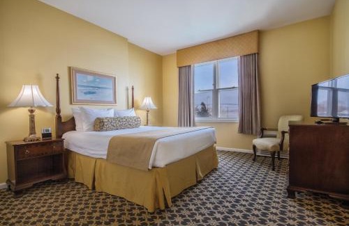 This beautiful resort hotel in Jamestown, Rhode Island overlooks Narrangansett Bay and is within walking distance of Jamestown Golf Course. It features spacious suites with a refrigerator and free WiFi. Club Wyndham Bay Voyage Inn is a Victorian-style, all-suite resort, decorated with rich, warm colors and dark wood furniture. Each suite includes a separate living room with a cable TV, DVD player and sofa bed. All suites also have a microwave and kitchenware for 4 people. Free access to the hotel gym, sauna and seasonal outdoor pool is provided to all guests of the Club Wyndham Bay Voyage Inn. The 24-hour front desk will also provide guests with concierge services. Club Wyndham Bay Voyage Inn is 10-minutes from the US Naval War Museum. Newport State Airport is 7.5 miles away.