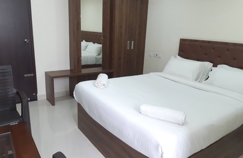 Best-rates for the CNR Residency Madanapalle starts from $41 per night with includes Security/Safety, Bedding/Linens, Guest Services, Child Friendly, Internet, Parking, TV with all other amenities. Perfect for Weddings is committed to ensuring every guest experiences a comfortable and extraordinary stay, whether planning a romantic getaway, a honeymoon, a pet-friendly stay, or celebrating with the entire wedding party.