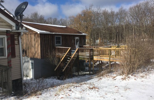 Over 2000 square feet to give your family or group room to spread out, located just 4 miles north on Rt. 19 from Winterplace Ski Resort. It's 4 miles to Glade Springs and 15 miles to Beckley. Easy access right along Rt. 19 with roadside and private off-street parking for up to four vehicles. The coal miner's cabin is set up with lots of sleeping spaces and a kitchen roomy enough to feed them.