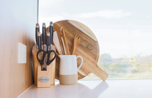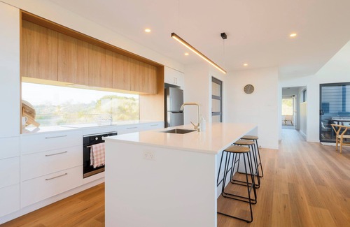 The designer lounge and dining table allow you to soak in the view thanks to the floor-to-ceiling glass windows or watch a movie or your favourite program. Both smart TVs at the house come with Netflix and Kayo streaming services for an enhanced experience.