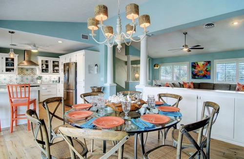 Fresh + new, "Bimini By The Bay" is a charming combination of retro + modern located on a wide, breezy canal with quick access to Little Bay. Approximately 3,000 sq ft, this spacious vacation home features plenty of room for entertaining including: open living and dining areas, a large updated kitchen + bonus wet bar area. "Bimini By The Bay" boasts 4 bedroom suites, each with its own king size bed + newly remodeled private bath. There is also a bonus bunk room or fifth bedroom. This house comfortably sleeps 14 (in beds), making it perfect for multiple families on vacation or four couples looking for a relaxing getaway! Discount rates available for week rentals .