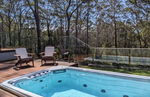 Coastal bush retreat> Space,Nature,Relaxation, Dual swim spa and fireplace | House in Kincumber South