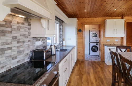 Coastal Cabin is a two-storey detached home consisting of a generous open plan kitchen and living space with a dining table seating six, oven, hob, fridge/freezer, microwave, toaster, Smart TV, board games and a woodburning stove overlooking the coast, as well as a utility with a washing machine and tumble dryer. There is additional seating in the snug, and the bedrooms consist of a double with an en-suite and a balcony, another double with a balcony and a bunk room. Outside, there is a private front garden with decking, and off-road parking for two cars. Two well-behaved pets welcome, but this is a smoke-free property. Guests can find a shop in 1.3 miles and a pub in 0.7. WiFi, fuel, power, bed linen and towels are all included in the price. Treat yourself to a wonderful stay at Coastal Cabin. Note: Steps up to the property, so please take care. Note: In July and August, the property only accepts week-long bookings. Note: W/C October 26th, it must be a week-long booking.