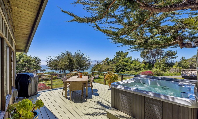 Coastal cliffside hideaway with yard, hot tub, & wood fireplace - dog-friendly | House in Jenner