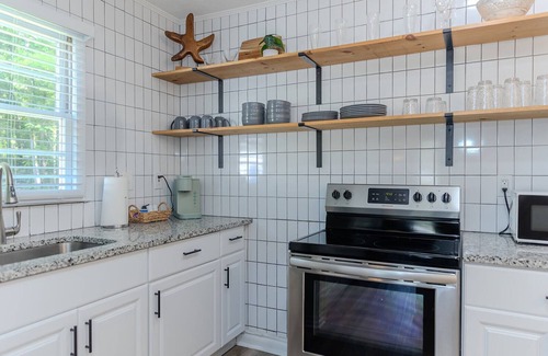 Inspired by our favorite coastal Georgia towns, this two-story, two bedroom one bath cottage is like a beach oasis in the city! The ultimate relaxation between all the excitement that Covington has to offer. An easy walk to the Square for all your favorite dining experiences, shopping and tours.