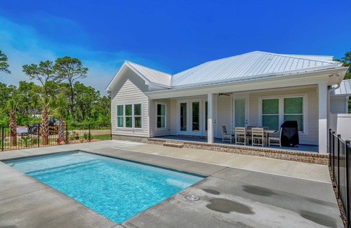 Escape to the tranquil coastal haven of our newly constructed 4-bedroom, 2.5-bathroom Florida cottage nestled in the historic old Florida region along the Forgotten Coast. Indulge in the charm of modern coastal-inspired interiors with a partial water view, perfect for accommodating up to 8 guests. Situated amidst the storied grounds of Camp Gordon Johnson from the WWII era, our home offers a unique window into local history, further enriched by the nearby Camp Gordon Johnson museum.