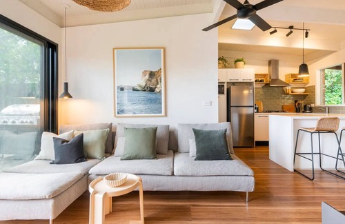 Private and cosy, this bright beach home is in the heart of the Peninsula. With wooden floorboards spilling out on to a spacious deck, a well-appointed kitchen, working fire place and two comfortable bedrooms it has everything you need for a dreamy escape.