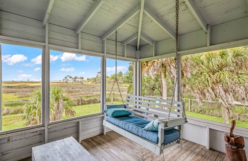 Unobstructed views of the Gulf allows for quiet relaxation on the large screened porch. French doors in the living room and bedrooms ensure that all rooms enjoy the view of the bay. If star gazing and a good book sounds like an ideal quiet night, you will be right at home!