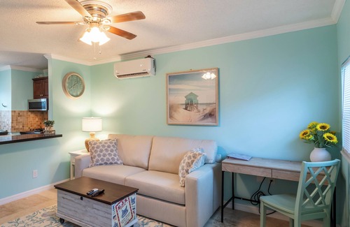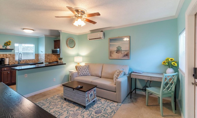 This cozy detached cottage is completely private, separated from the main house by a fence, with its own driveway, garden, and backyard. Relax in the Florida sunshine on two comfortable sun loungers, or fire up the charcoal grill for a laid-back cookout.