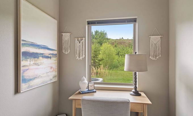 Your West Des Moines adventure begins at this marvelous 1-bedroom apartment. With a cozy king bed and a comfy twin bed, guests will feel right at home. The bathroom features a relaxing bathtub and a convenient hair dryer. Kickback, relax, and enjoy everything West Des Moines and our apartment has to offer. Attached Garage! Enjoy this spacious end unit w/high speed wifi, YouTubeTV, chef ready kitchen, & 5 star customer service included with your confirmed reservation. High end furnishings and top notch amenities help ensure your stay with us is as comfortable as possible. A sizable kitchen & island seating make cooking & serving a breeze. This unit also features an office nook w/desk. Let Midwest Hospitality take care of you with the best our city has to offer here in Jordan Creek West Des Moines.