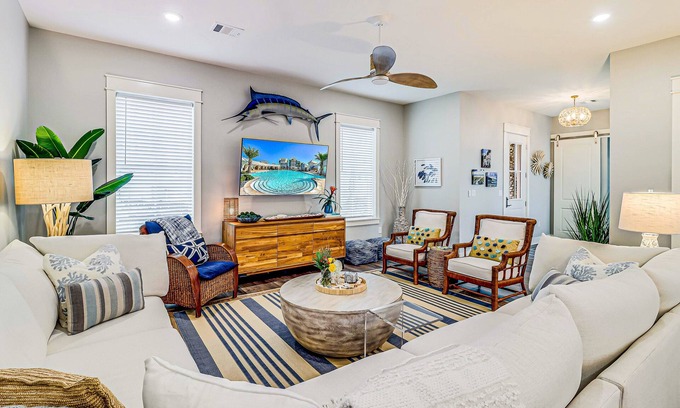 Coastal Happy Ours is an ideal getaway for those planning a wedding stay, offering ample space and luxury just minutes from the beach. This stunning property ensures that your group feels relaxed and at home while celebrating your special occasion.