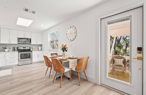 After a recent comprehensive revamp of the guesthouse, we are excited to present Coastal Hideaway. Every inch of this space was thoughtfully and lovingly updated to demonstrate the unique experience of enjoying a private, almost "country" outdoor setting while simultaneously enjoying an indoor coastal setting that speaks to what Sarasota is most famous for: her beaches.