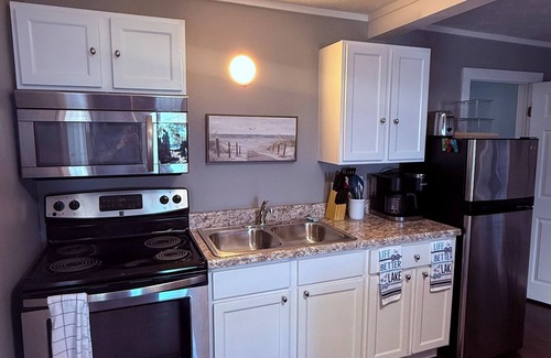 Located in the heart of downtown St. Ignace, our private condo puts you just feet from the beautiful shores of Lake Huron, the Mackinac Island Ferries, and all the shopping, dining, and attractions the city has to offer. Whether you're setting off for a day on Mackinac Island or exploring local boutiques and restaurants, everything you need is right outside your door. Experience the perfect blend of convenience, charm, and breathtaking views in one unforgettable location. **Our condo is a second floor unit with a beautiful view of the lake from our balcony. You must walk up and down stairs during your stay to access the condo. There is no ramp, no elevator, no fireman pole to assist. If you have any medical issue or are not able to safely walk up and down stairs with luggage, please pass on our place.