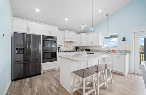 You'll find yourself in vacation mode as soon as you step inside Coastal Paradise. The pristinely kept open floor plan is decorated with coastal décor and boasts every modern convenience for you and your loved ones. The kitchen is spacious and includes upgraded appliances and double ovens to cook for a crowd. The kitchen island is large and has seating for three guests. The dining room is located nearby and seats eight guests. Each bedroom has its own Air conditioning unit so you can control individual room temperatures.
