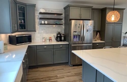 Your stay at Coastal Paradise comes complete with modern amenities that ensure comfort and convenience for you and your guests. The expansive open-concept kitchen boasts a massive quartz island perfect for catering large gatherings, while the elegant dining room accommodates twelve people around a hardwood table. Enjoy the outdoors on the two large decks, furnished with dining tables, cozy couches, and a Weber gas grill for delightful al fresco meals. With additional features like a large cedar outdoor shower, ample beach gear including chairs and boogie boards, and state-of-the-art entertainment systems throughout, every moment here feels luxurious and carefree.