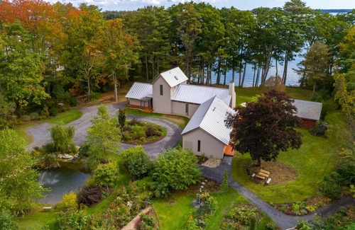 Welcome to Coastal Serenity Meets Modern Elegance, a stunning property located at 101 Lower Flying Point Road in Freeport, Maine, where modern design harmonizes with coastal charm, making it an idyllic setting for your dream wedding. This serene retreat can comfortably accommodate up to 16 guests, providing the perfect backdrop for intimate gatherings and joyous celebrations. With its beautiful architecture and expansive outdoor spaces, your special day will be memorable, combining both elegance and tranquility.