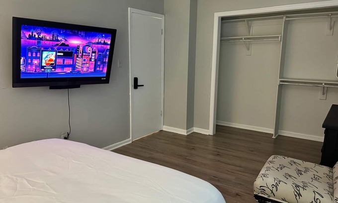 Escape to your own bright, air-conditioned queen room in a Virginia Beach townhouse—just one block from the Oceanfront and Boardwalk. Enjoy free high-speed Wi-Fi, shared modern bath with walk-in shower, and access to a seaside patio with BBQ. On-site laundry and free parking make your stay effortless. Book instantly for flexible check-in and exclusive long-stay rates!