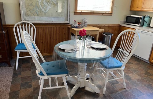 Enjoy any season at THE CROW'S NEST at Anderson Landing. On the second floor of a separate building from the main house you'll have privacy, comfort, view and access to one of the most beautiful bays on Puget Sound. Enjoy our no-bank waterfront with view seating, lush gardens, and fire pit right on the beach.