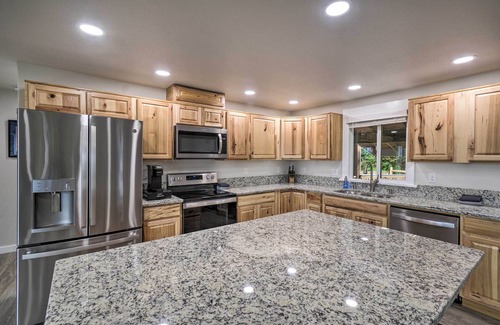 KITCHEN: Fully equipped, stainless steel appliances, microwave, toaster, blender, Keurig coffee maker, Crock-Pot, cooking basics, dishware/flatware, spices, island (2 stools)