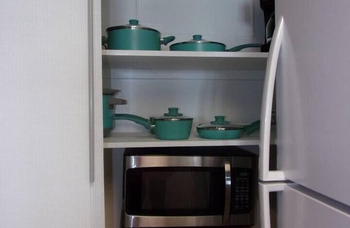 The private bedroom in the quiet side of the condo offers relaxation in the spacious room, the comfortable queen bed, the closet and drawer space is plentiful, the television is large, cable and "smart" - sometimes smarter than we are ;). The kitchen has everything you could possibly need from a coffee cup to a crock pot - whether staying a few nights or a couple of months - you'll have everything needed to feel right at home. We provide starter supplies of toiletries, paper products and coffee in order to get you started on getting to know the lay of the land and make your shopping lists while not having to worry about that long drive in and needing a clean restroom. We can't wait to have you stay at Coastal Waves, hear and see them from the balcony off the living room, and watch them literally from the kitchen. You'll be back - we promise - it's brand new and just waiting for you!