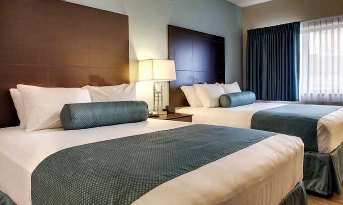 A fitness center, a bar/lounge, and a 24-hour business center are available at this smoke-free motel. Free self-serve breakfast and free WiFi in public areas are also provided. Additionally, coffee/tea in a common area, a business center, and laundry facilities are onsite.