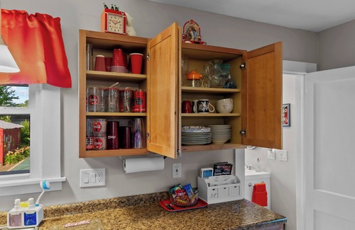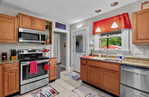 Escape to this enchanting Coca Cola Themed 2-bedroom, 1 bath, sitting room cottage in the heart of Pacific. Unwind in the cozy living room with a sofa bed, and rest easy in the king and queen beds. Freshen up in the bathroom stocked with plenty of essential. Home is equipped with fast WIFI, Smart TV's, Washer/Dryer, Super comfy beds & linens, multiple USB ports for charging devices, a private fenced back yard with outdoor furniture, shuffleboard, bowling, water toys for the kids, BBQ grill, fire pit, beverage fridge, string lights, Bluetooth speaker & fully stocked kitchen, Coffee & Tea Station, Pack-N-Play, kids games & toys, Pet Friendly with pet bowels, treats & even a fire hydrant.