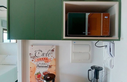 Bedroom and living room with sea view, new and well decorated in Costa Azul! With double bed, smart TV in the living room and bedroom, double sofa bed (see photos of it open before booking), split air conditioning and full kitchen. Condominium with 24-hour concierge, gym, swimming pool and laundry (paid separately).