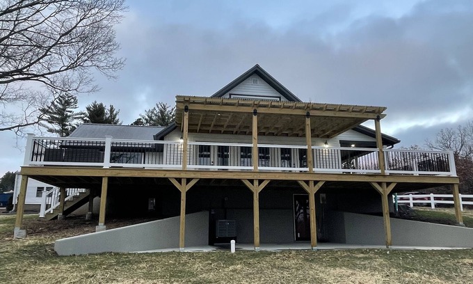 This memorable place is anything but ordinary. The newly renovated 100-year-old farmhouse sits peacefully in the midst of oak trees and a private 6-acre land. It boasts of both modern and rustic design. It is built to entertain families with a finished basement that includes billiards/poker table/foosball/darts and its own dry bar. There is even a theater room ready to welcome popcorn loving moviegoers.