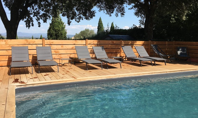 Completely independent, it enjoys a superb view on the Monts de la Drôme and Ventoux. Several terraces, sitting area, outdoor lounge and private (and heated) swimming pool ensure an absolute relaxing stay.