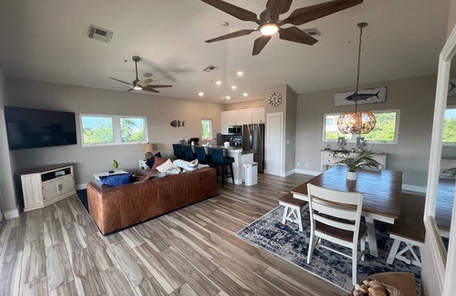 Outside, on the ground level, a Weber grill awaits, perfect for grilling delicious seafood, burgers, brats and more. Located near Salty Approach, the grass airstrip, you can watch private planes and helicopters take off and land throughout the day. A public beach on the west side and a prime sunrise/dolphin viewing beach on the east side offer additional opportunities to explore and enjoy the island's natural beauty.