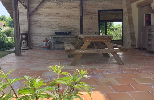 Two large covered terraces extend the living space on sunny days with wrought iron garden furniture, picnic table and plancha.