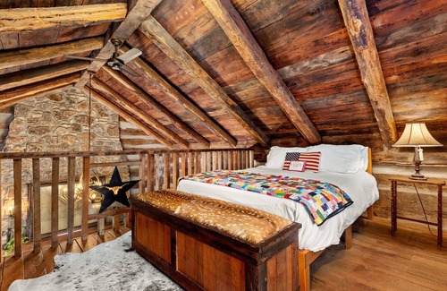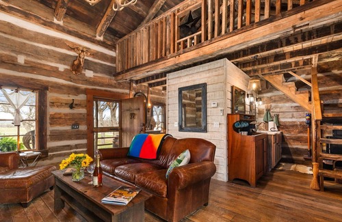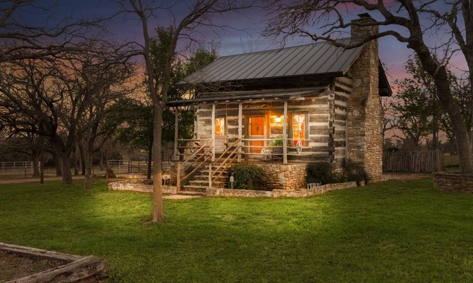 Rest easy at this luxurious and unique historic 1850’s log cabin. Minutes from Enchanted Rock this romantic & comfy cabin is secluded, quiet, and peaceful. Historical Fredericksburg is a scenic 20 minute drive and after a day of wine tours, shopping or hiking, the cabins’ 66” Copper Tub will be waiting for a glorious bath. Nature awaits behind the private security gates for taking a leisurely walk on the half mile “driveway” or venture out on country roads and enjoy the wildlife!