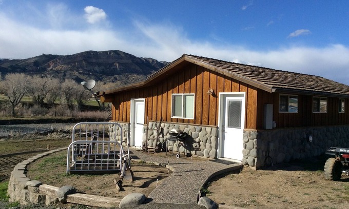 Nestled just 14 miles up South Fork Road, this cozy and comfortable cabin is sunny with lots of windows to enjoy mountain views as well as a close up view of all Wyoming wildlife-- it doesn't get much better than this!! This little slice of Wyoming heaven includes horses and wild life that frequent the area. Close proximity to Cody, Wapiti, Yellowstone, skiing, hunting and all outdoor recreation. Come and relax and fish right outside your patio door in the river that runs through the property. Have the experience of seeing elk, big horn sheep, wolves, geese, eagles, moose and more wild life on the property. Only 5 miles from Forestry Road. Both washer and dryer are available on site. This home is available for daily, weekly, monthly or longer periods. Come stay, rest, and rejuvenate your soul in the back country of Wyoming. Comes with a kitchenette that includes a fridge, microwave, hotplates, electric skillets, and all of your essentials. A bbq grill and fire pit are right outside the cabin perfect for grilling and enjoying some s'mores! Window AC unit is plenty for this quaint property. 3 beds are nestled in one very large room, along with cots and blow up air mattresses if necessary. Bed descriptions are : 1 queen, 1 full and 1 twin bed. Sleeps 4 very comfortably. Feel free to ask any further questions. Thank you! Katie