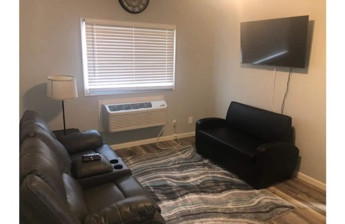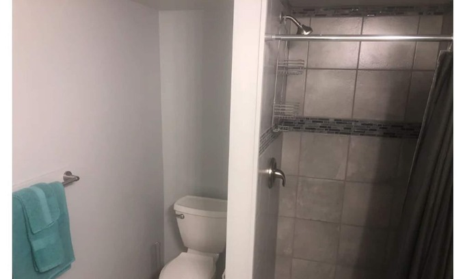 Located a block away from the local bar and restaurant. This space is also right across the street from the park if you have kids and want them to stay active during your stay! This is a small space but perfect for a family or small group of travelers. It is a tight stay for four adults if your stay is multiple nights but great for 3 or less or a family!