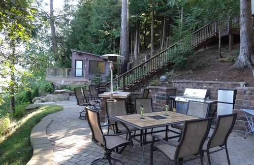 Situated on 110 feet of private waterfront you will enjoy the large patio, patio heaters, outdoor speakers, Solo Stove fire pit and outdoor kitchen. All on the water! Just steps away is the large dock that can accommodate your boat or pontoon along with ramps for your jet ski and plenty of space for your water toys. Jump in to 25ft of water off of the dock.