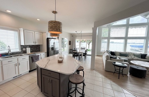 Coldwater Lakefront literally sitting on the waters edge with the most beautiful sunsets! Open floor plan with water views from every room! Plenty of parking for your guests including the extra wide driveway on our back lot! Our back lot also features a great place to enjoy our included solo fire pit and our complimentary smores bar! We have one of the best firm sandy beaches on the lake with steps down from the dock! Gorgeous kitchen equipped with stainless appliances and High End quartz countertops. 1st floor Master suite with full bathroom and additional half bath off the foyer area! Huge deck to watch the lake activities and an awesome place to daydream! If you catch too much sun hide behind one of our shade trees or sneak inside and enjoy the central air conditioning! Living room with cathedral ceilings and floor to ceiling windows! Whole house WIFI included! Family friendly street with no through traffic and extremely private! Equipped with Webber grill and Propane tank! We are new owners and just moved here from down the street, we love this place and consider our neighbors very special! Please be mindful of the 15 mph speed limit, no parties past 10pm and please be respectful to our neighbors! We hope you enjoy your stay!