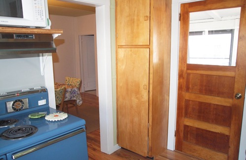This inviting and peaceful three bedroom, beautifully restored 1920's cottage is part of the Cole’s Park Beach Association which provides a private sandy beach a short walk down the street at Spring Lake where you can savor the sand in your shoes. The cottage has a large, comfortable front porch, tastefully furnished living room and dining room, wood floors, and lots of windows for sun. The well-appointed kitchen with its adorable blue stove invites you to have an old-fashioned eat-in meal on the Fiesta dishes. There is also a gas/ charcoal grill on the cute back yard patio for outdoor cooking. The master bedroom has a queen bed and an en-suite full bath. That means a full bath with laundry on the main floor and a step full bathroom upstairs in the master bedroom. The other bedrooms have full-size beds with an additional twin in one room. A Pac-n-Play is also available. Both bathrooms turquoise sparkle with cottage charm.