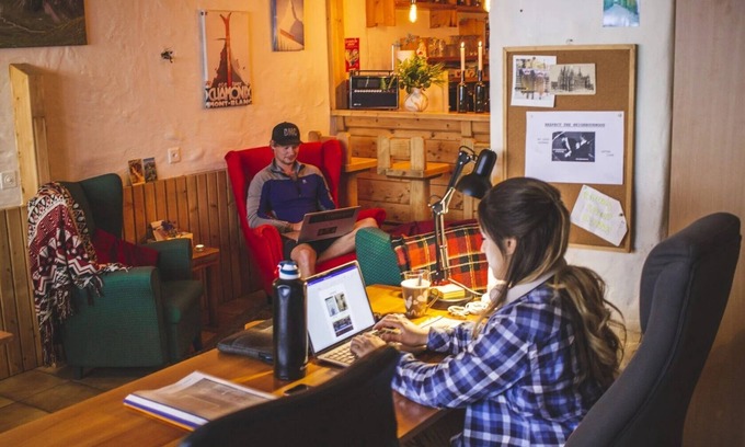 If you are looking for the homey feel in a like-minded community, Petit Velan might be for you. It has the real mountain chalet vibe with a well-equipped kitchen, bar, dining area, laundry facilities, workspace and a crackling fireplace.