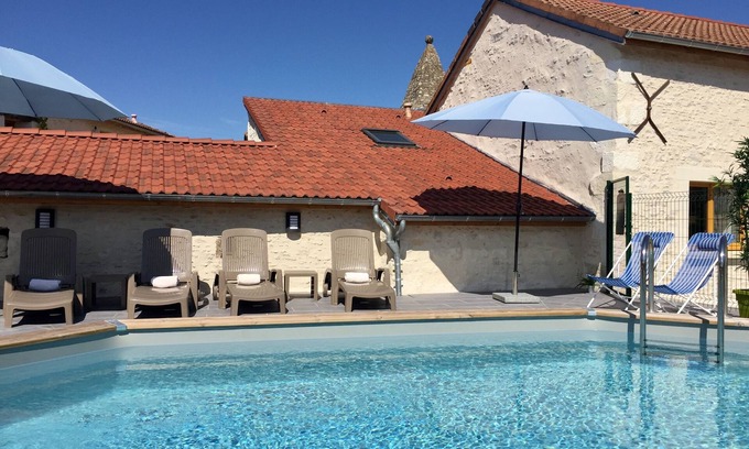Collection of boutique cottages around a courtyard with pool & garden, sleeps 15 has 6 Bedrooms , 6 Bathrooms, and max occupancy of 15 people. The minimum rental for this property is 1 nights, but this can change depending on the season you plan on staying. Previous guests have given good rated it, and VRBO labeled it a top-rated Cottage because of the excellent services rendered by the owner or manager of this Cottage, and has consistently provided great experiences for their guests. Most families or guests that use it recommend it to their friends and some of them are repeat guests. Cottage has a friendly neighborhood, and the Chaveignes has interesting places to visit. If you want to learn more about the Cottage in Chaveignes, such as places to visit and things to do nearby, you can check below to learn more.
